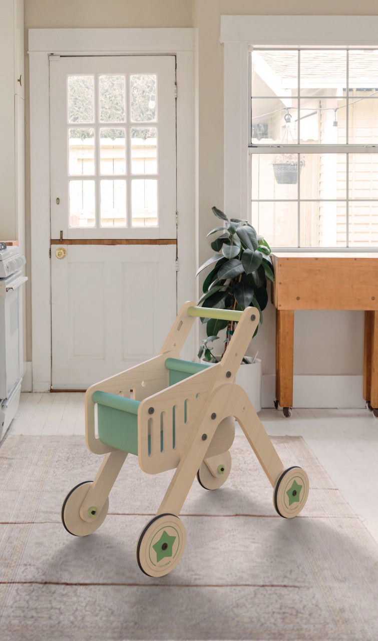 Antepremergator din lemn 2 in 1 MamaToyz cu cos de cumparaturi