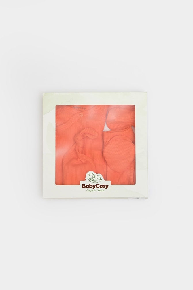 Cutie 4 piese pentru nou nascut - 100% bumbac organic - Portocaliu, BabyCosy