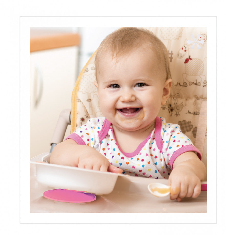 Datorită vidului antiderapant, Babyjem fixeaza placa si impiedica varsarea recipientului cu mancare, astfel incat sa nu se distraga sau sa se murdareasca in timp ce mananca. Asigurati-va ca masa este uscata. Asigurati-va ca nu exista aer intre placa si masa, apasand-o cu mana.