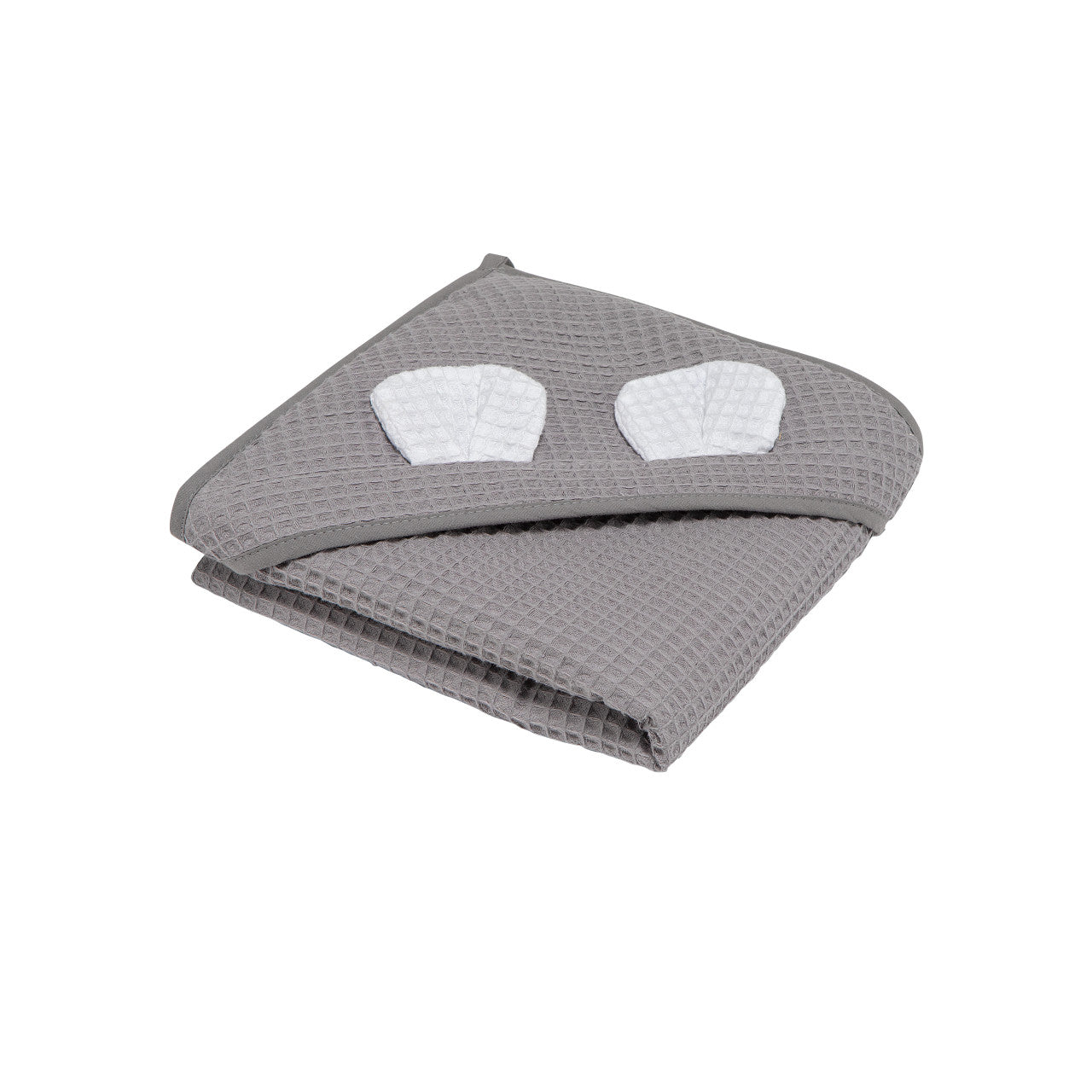 Prosop nou nascut Skiddou Skumi, 100% bumbac, cu gluga cu urechiuse, Gri inchis, 100x100cm