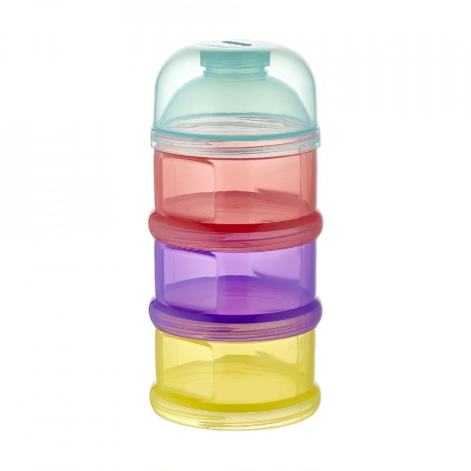 Este ideal atat pentru acasa cat si pentru calatorii: facand posibila prepararea usoara a unui biberon de lapte, prin simpla rasucire a capacului reipientului si varsarea dozei de lapte praf in biberon. Caracteristici : * Recipientul este format din 3 compartimente. * Puteti utiliza diviziunile individual sau impreuna. * Formula de lapte praf poate fi transferata cu usurinta in sticla. * Compartimentele pot fi utilizate ca recipient pentru gustare in lunile urmatoare. * Poate fi sterilizat. * Se poate curata in masina de spalat vase. * Fara BPA si ftalati. Usor de transportat. * Realizat din polipropilena importata pentru industria alimentara, un material non-toxic, usor si lucios, rezistent si greu deformabil. Varsta recomandata : 0luni +