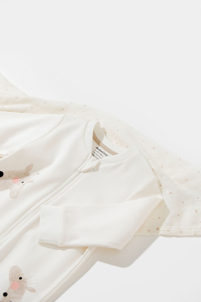 Salopeta cu fermoar Girafe, BabyCosy, 100% bumbac organic, Ecru