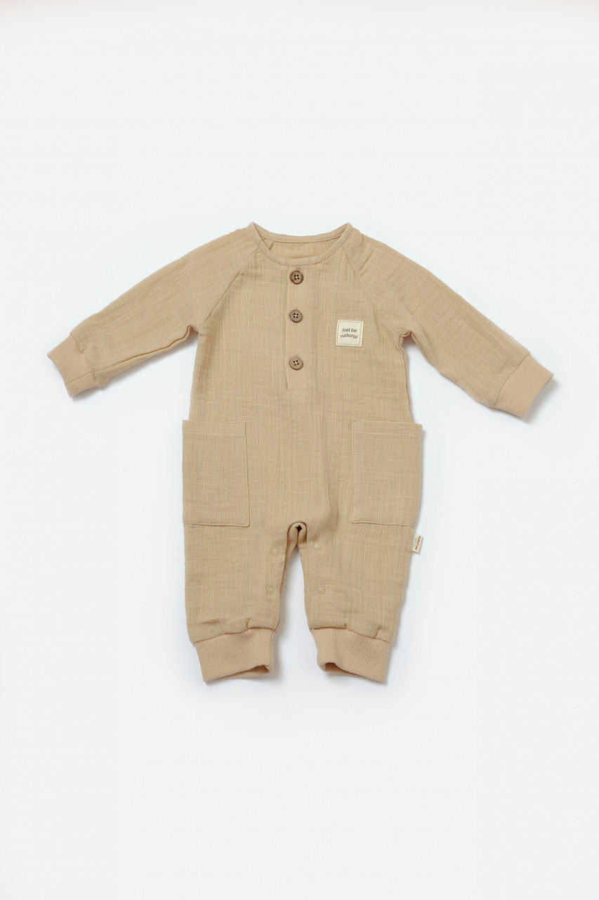 Salopeta cu nasturei, Winter muselin, 100% bumbac - Apricot, BabyCosy