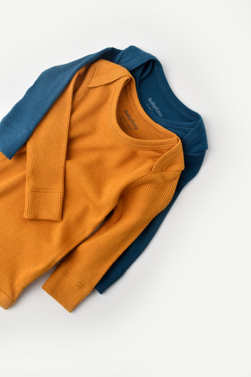 Set 2 body-uri cu maneca lunga bebe unisex din bumbac organic si modal - Bleumarin/Sofran, BabyCosy