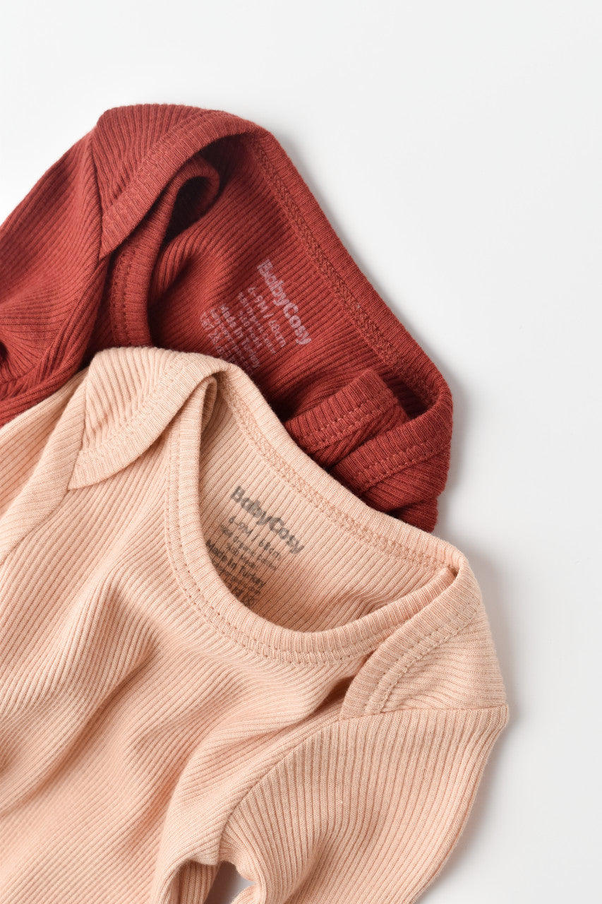 Set 2 body-uri cu maneca lunga bebe unisex din bumbac organic si modal - Caramiziu/Somon, BabyCosy