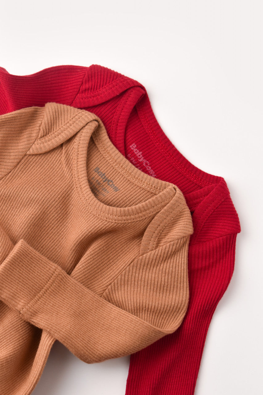 Set 2 body-uri cu maneca lunga bebe unisex din bumbac organic si modal - Maro/Rosu, BabyCosy