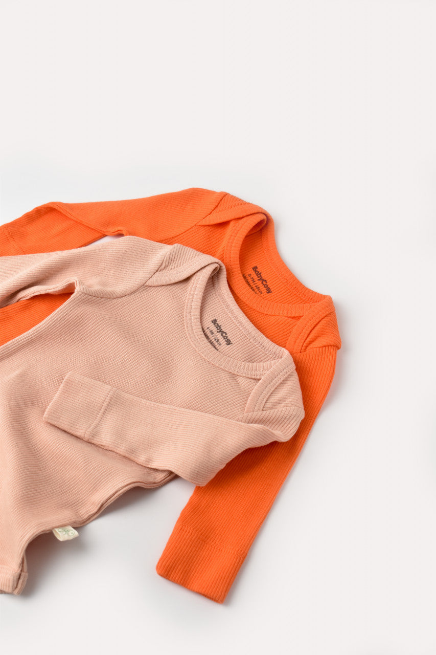 Set 2 body-uri cu maneca lunga bebe unisex din bumbac organic si modal - Rodie/Piersica, BabyCosy