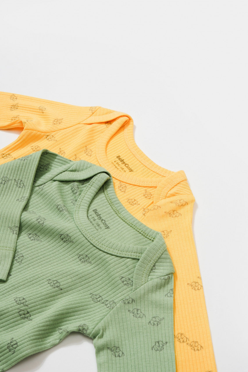 Set 2 body-uri cu maneca lunga Printed, BabyCosy, 50% modal+50% bumbac, Lamaie/Verde