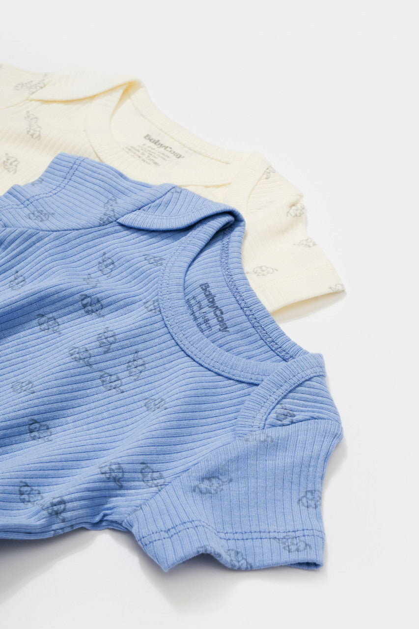 Set 2 body-uri Printed, BabyCosy, 50% modal+50% bumbac, Ecru/Lavanda