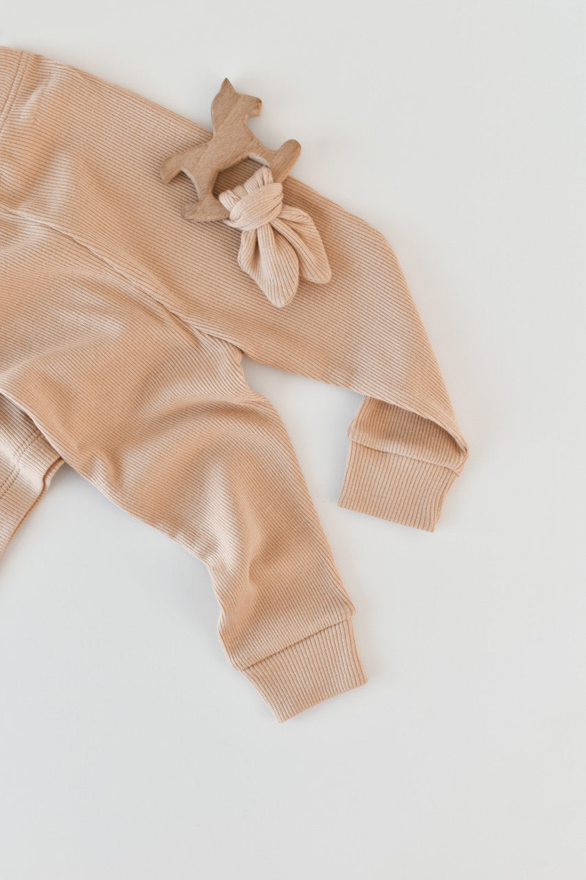 Set 3 piese: bluzita cu maneca lunga, pantaloni lungi si caciulita din bumbac organic si modal - Somon BabyCosy