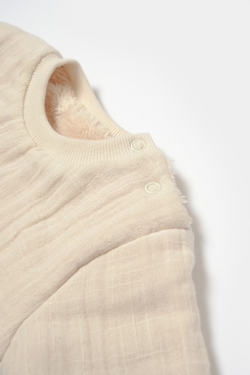 Set bluza dublata si pantaloni Ursulet, Winter muselin - Stone, BabyCosy