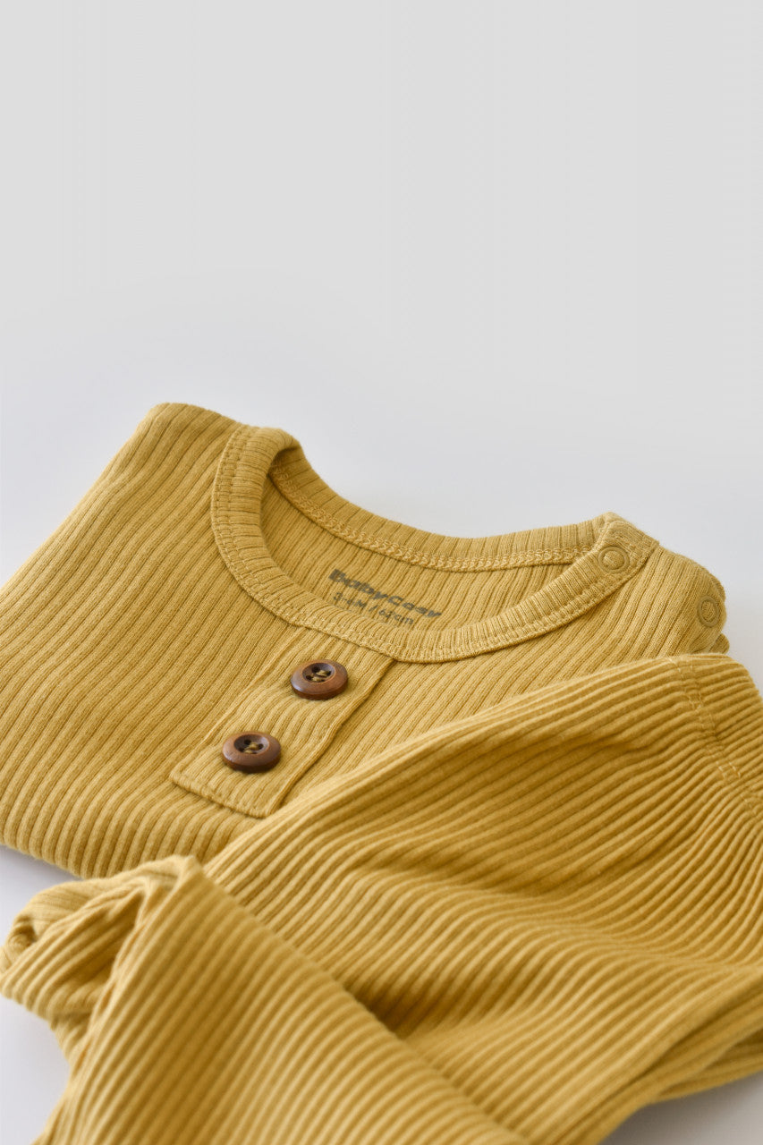 Set bluzita cu maneca lunga si panataloni lungi este perfect pentru orice anotimp. Acest model este potrivit atat pentru fetite, cat si pentru baieti. Caracteristici: - Este realizat din bumbac organic 50% - 50% modal , material certificat GOTS - Bluzita se inchide cu capse la umar - Fabricat in Turcia - Informaţii privind ingrijirea: spalati la 40°C, cu haine in culori similare, nu folositi inalbitori, uscati in uscator automat la temperatura medie, calcati la temperatura redusa.