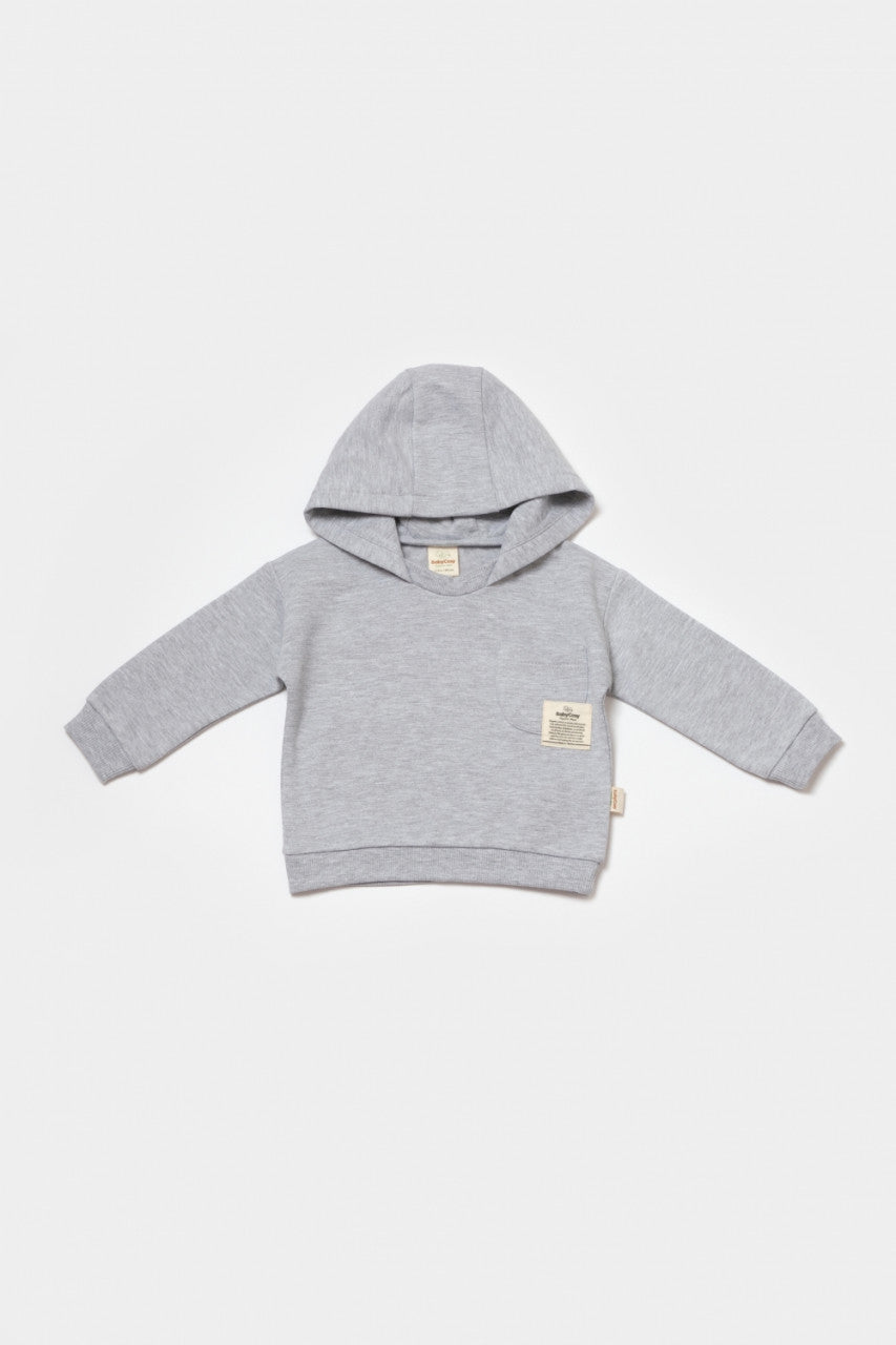 Set hanorac cu gluga si pantaloni, Two thread, 100%bumbac organic - Gri, BabyCosy
